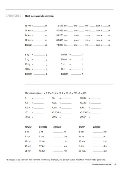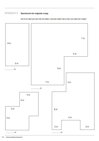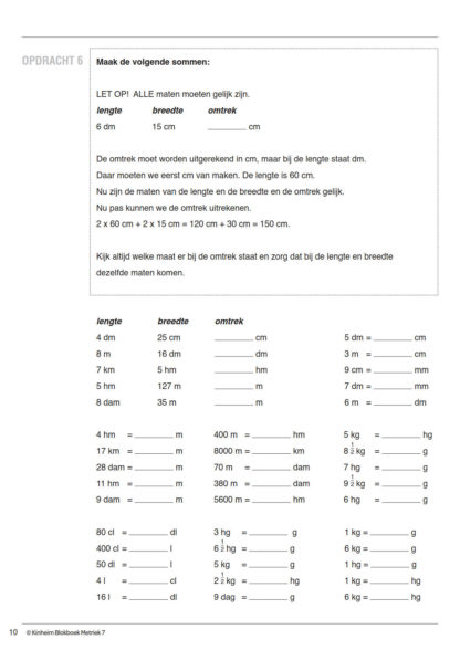 In Metriek 7 wordt het begrip oppervlakte uitgelegd en de leerlingen gaan hiermee oefenen. Alles wat tot nu toe behandeld is, wordt regelmatig opnieuw behandeld en de leerling wordt geleerd om begrippen met elkaar te combineren!