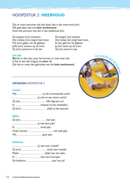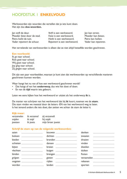 Voor het goed leren vervoegen van werkwoorden moet er veel worden geoefend! Dat kan op een plezierige manier met de reeks Werkwoorden, drie fris en kleurrijk vormgegeven werkboeken waarin de moeilijkheden bij het vervoegen op een systematische manier worden behandeld. Elke moeilijkheid wordt kort en krachtig besproken en met voorbeelden verduidelijkt. Daarna volgen gevarieerde oefenopgaven, die klassikaal of individueel gemaakt kunnen worden. Door de vele herhalingsoefeningen krijgen leerlingen al snel meer grip op het gebruiken en vervoegen van werkwoorden.