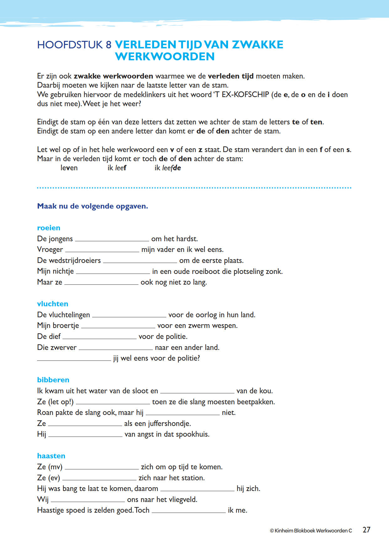 Blokboek Werkwoorden C is vanaf groep 7 te gebruiken.
