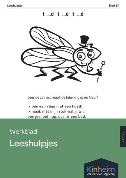 Extra werkblad bij Leeshulpjes om te oefenen met ‘t’ en ‘d’. Na bestelling is het werkblad te printen via ‘Werkbladen’ in Mijn Kinheim.