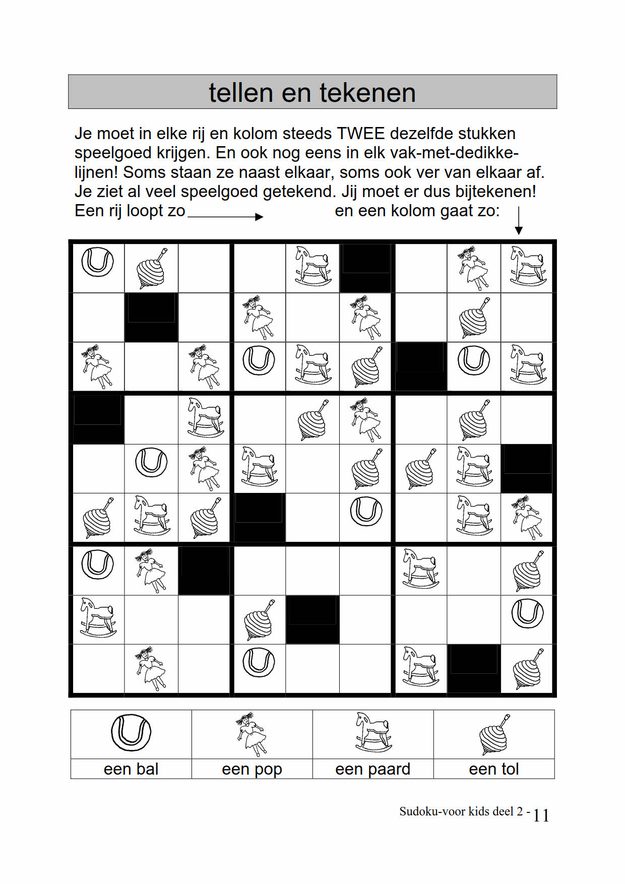 De tweedelige reeks Sudoku voor Kids speelt hier op in. De reeks is bedoeld voor leerlingen in de onder- en bovenbouw en kan zowel in groepen als individueel gebruikt worden. De leerzame sudokupuzzels ontwikkelen en bevorderen het logisch denken. Elke puzzel wordt kort toegelicht.