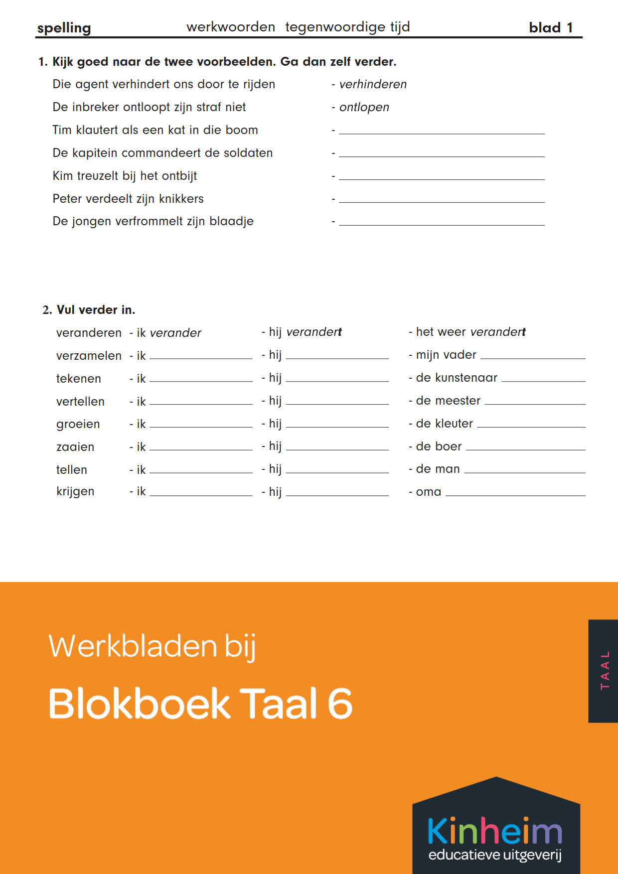 Blokboek Taal 6 | Werkbladen Spelling: werkwoorden tegenwoordige tijd 1