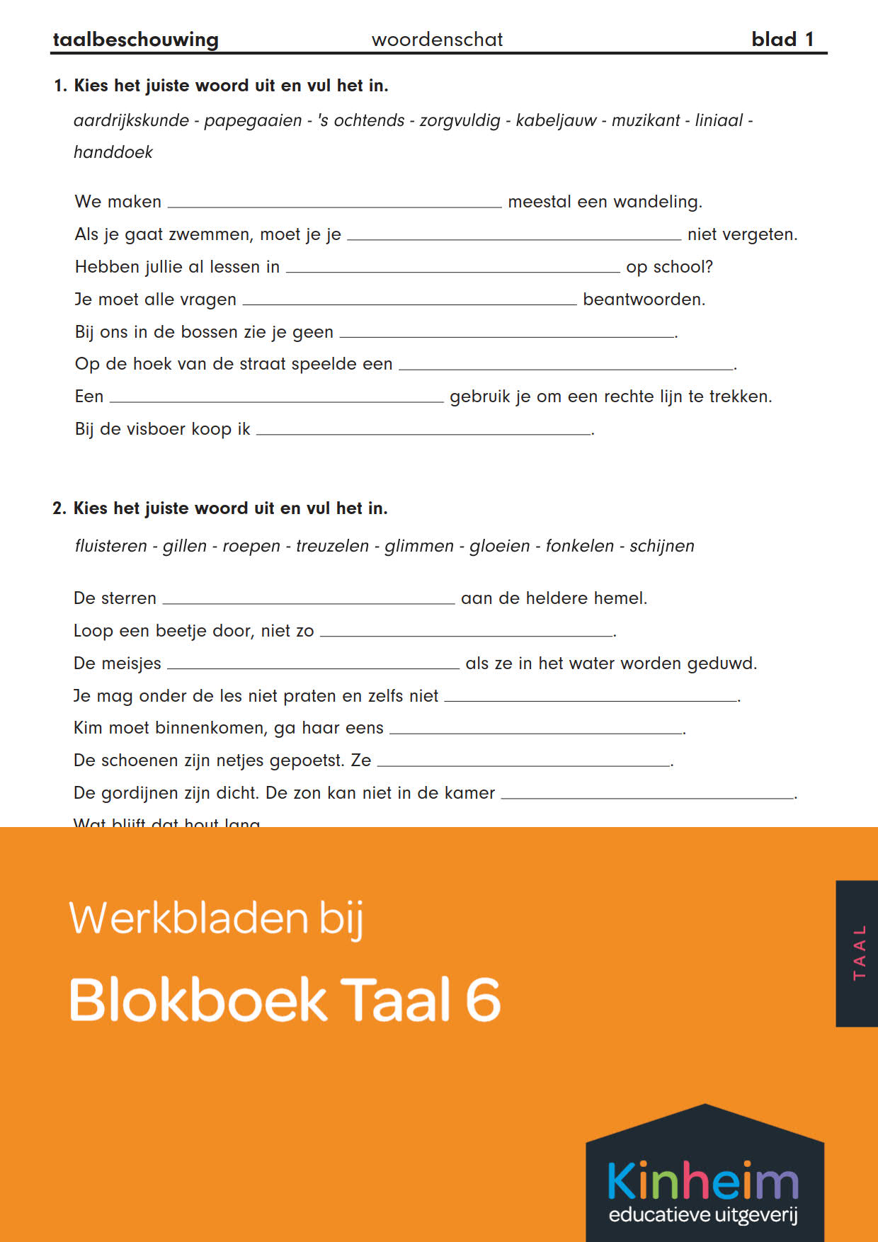 Blokboek Taal 6 | Werkbladen Taalbeschouwing: woordenschat 2