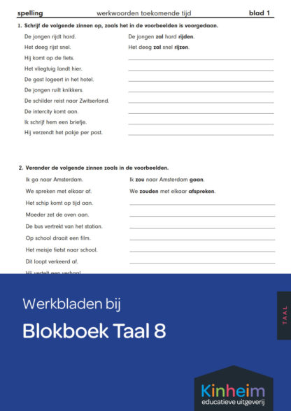 Blokboek Taal 8 | Werkbladen Spelling: werkwoorden toekomende tijd