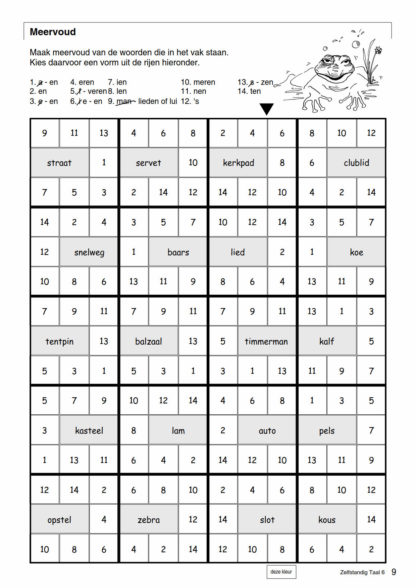 De opgaven in Zelfstandig Taal zijn steeds op dezelfde manier opgebouwd. Op elke bladzijde staat een vierkant met zestien tot twintig geruite vakken. In elk vak staat de opgave in het grijze ruitje en dienen de blanco ruitjes als antwoordmogelijkheid. De leerling zet een kruisje bij het antwoord van zijn keuze. Na het aankruisen van alle antwoorden legt hij het correctievel over het vierkant. Het correctievel heeft transparante, gekleurde ruitjes, waardoor de goede antwoorden als het ware dezelfde kleur krijgen. Dit maakt van nakijken een leuke klus en dat stimuleert de leerling om verder te gaan!